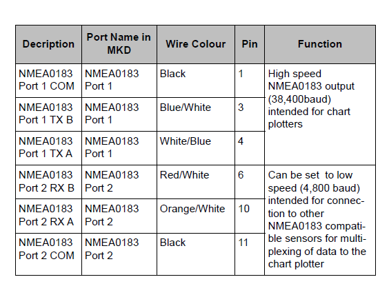 - Check the receiving port can be configured to 38400 baud on the chart plotter.