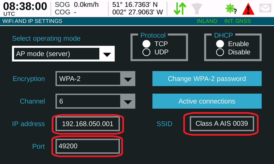 To get the AIS transmitting in AP mode(server);- Change the WPA-2 password to what you want.