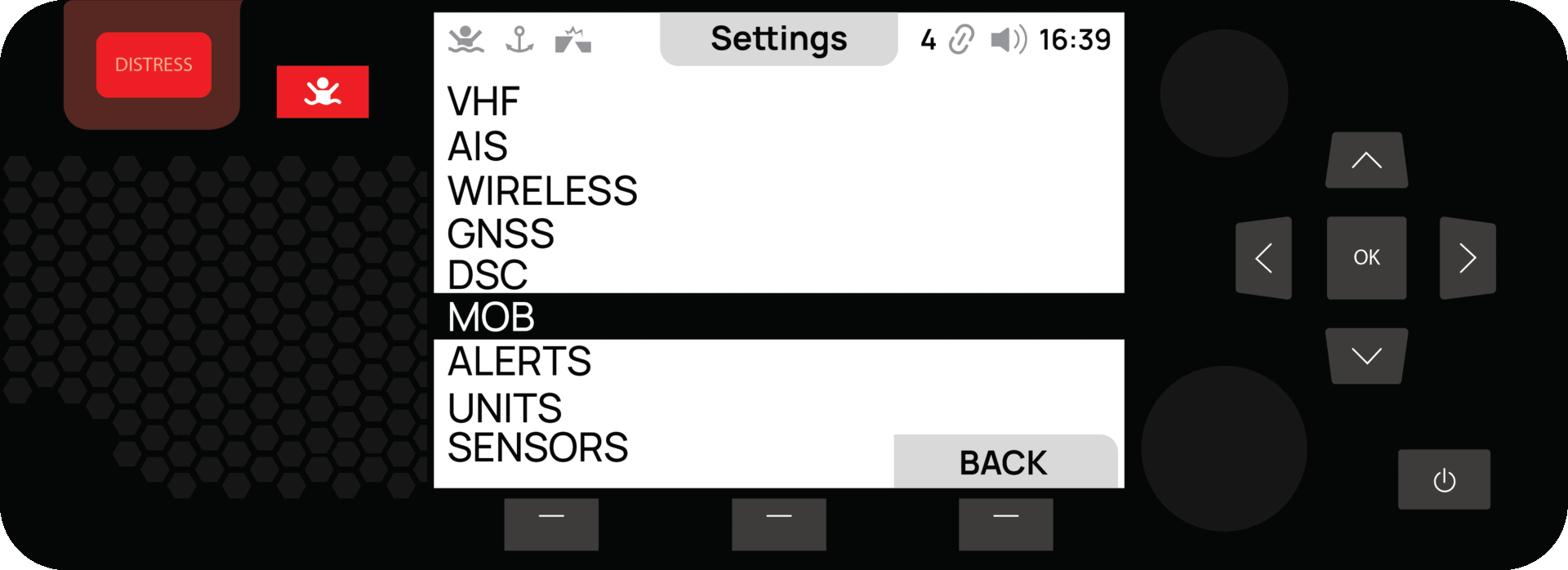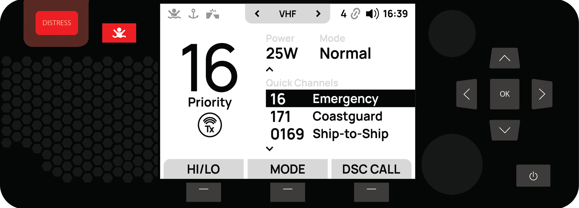 Distress calls can be made in two ways, first by using the red distress button and second through the DSC call menu.